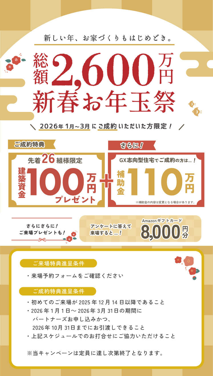 新しい年、お家づくりもはじめどき。─ご成約キャンペーンのお知らせ─
