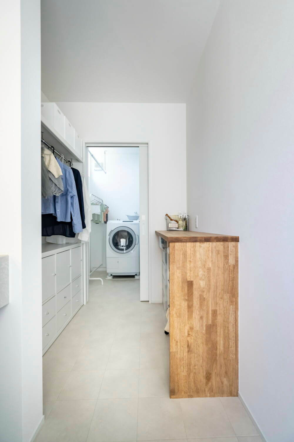 収納&家事スペースを隣に設けたことで、洗濯物を‟洗う、干す、しまう”がスムーズな動線になりました♪