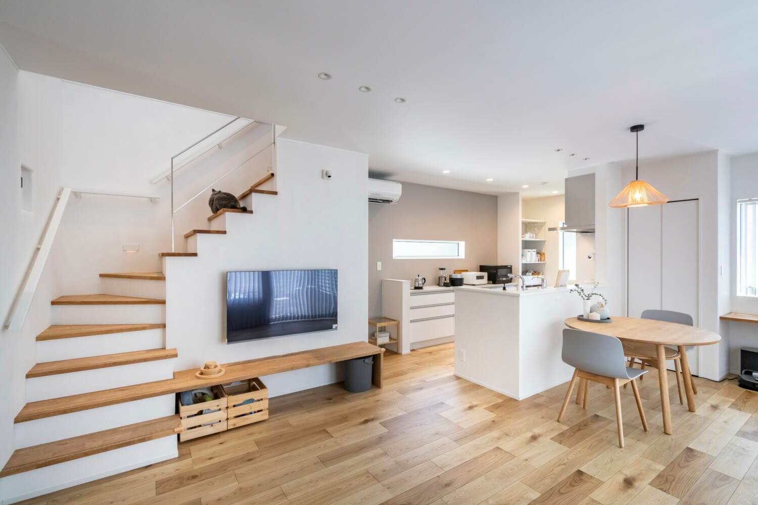 階段の段板の一部を伸ばして、テレビボードにしたことで、印象がよりスッキリしました♪