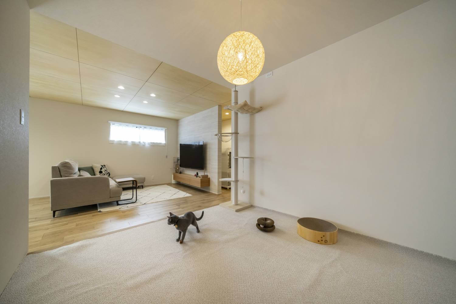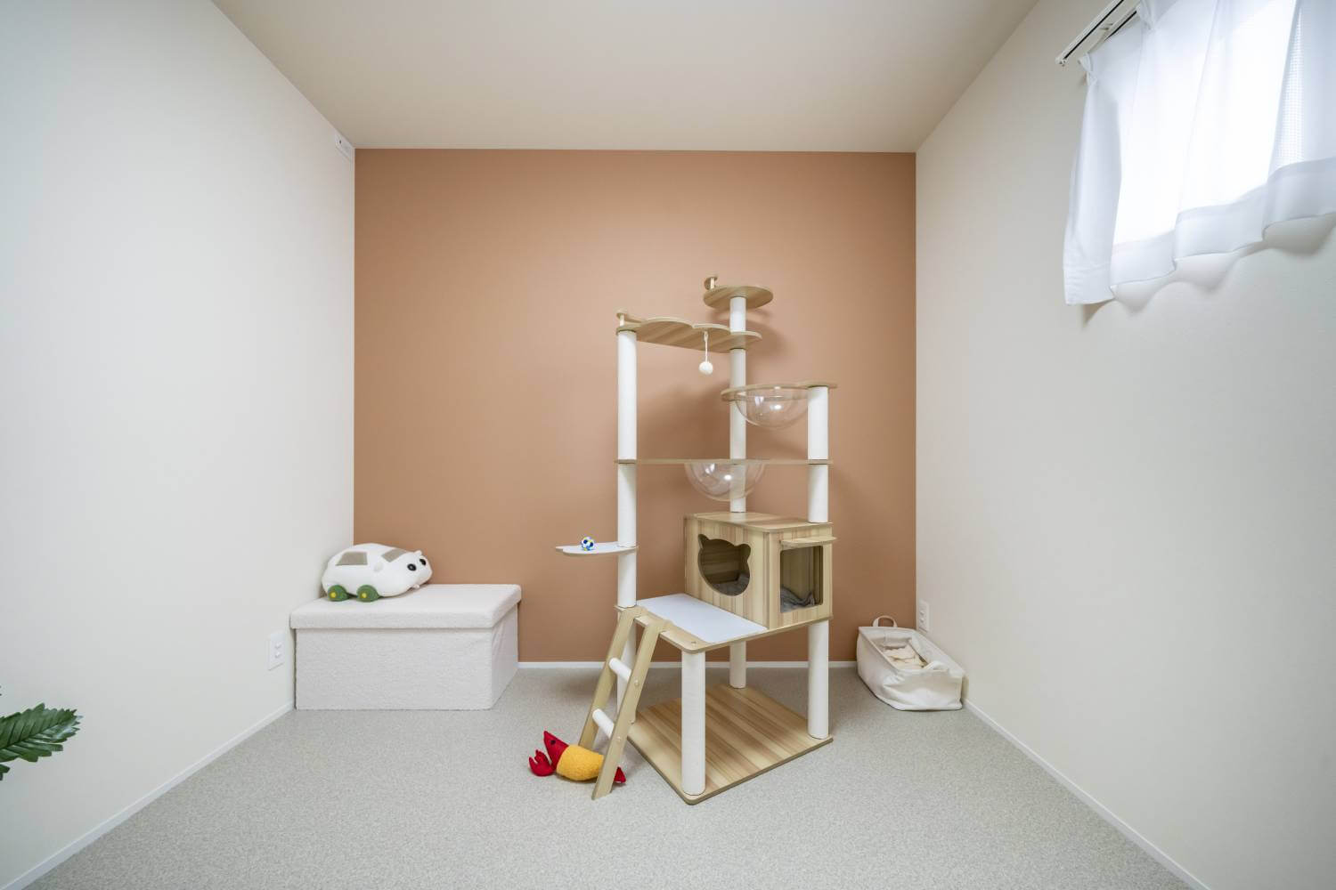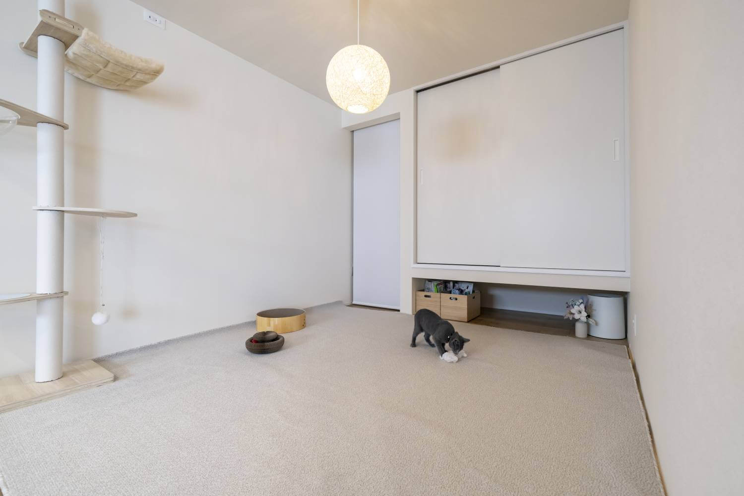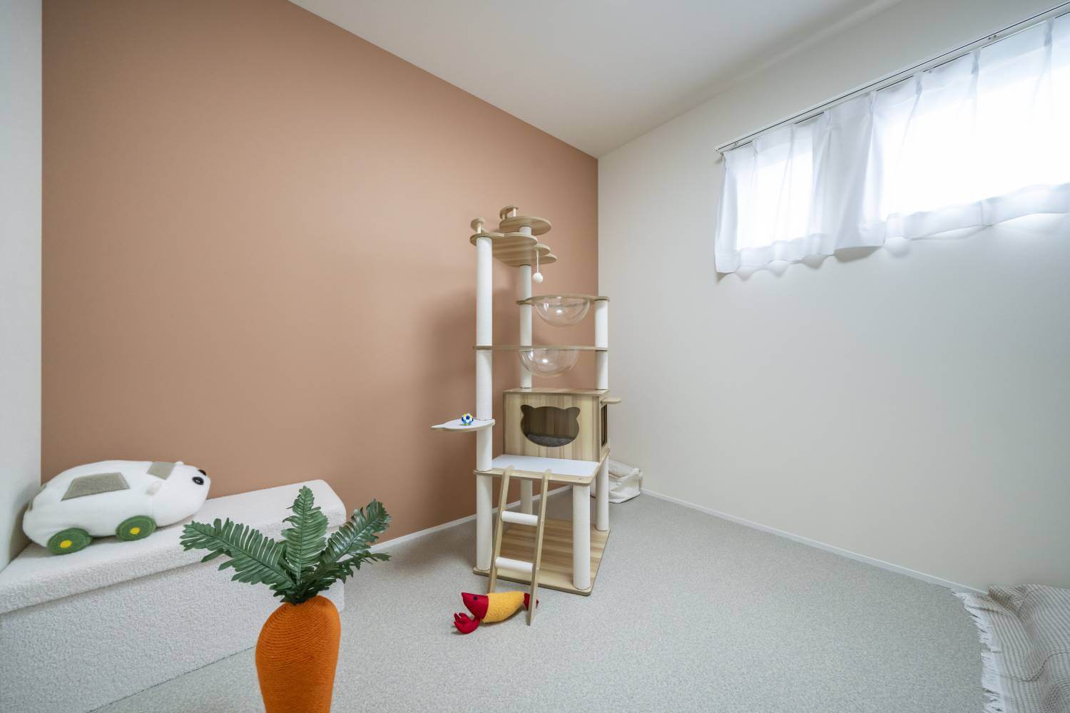 キャットタワーが愛猫の居場所となり、人と猫が心地よく共生できる洋室。