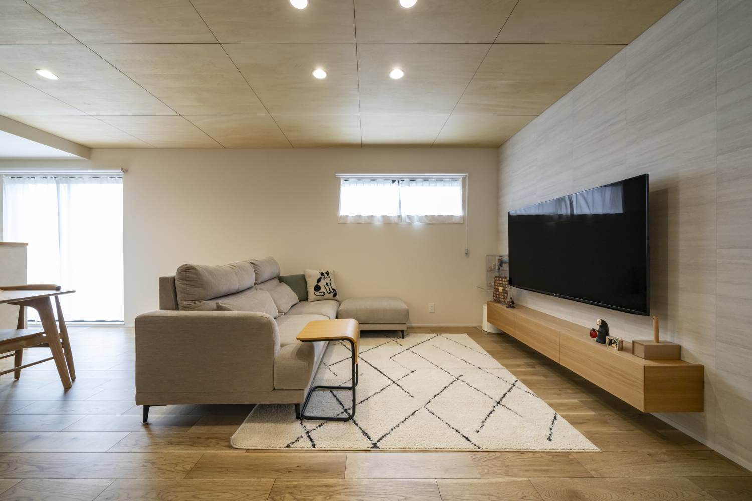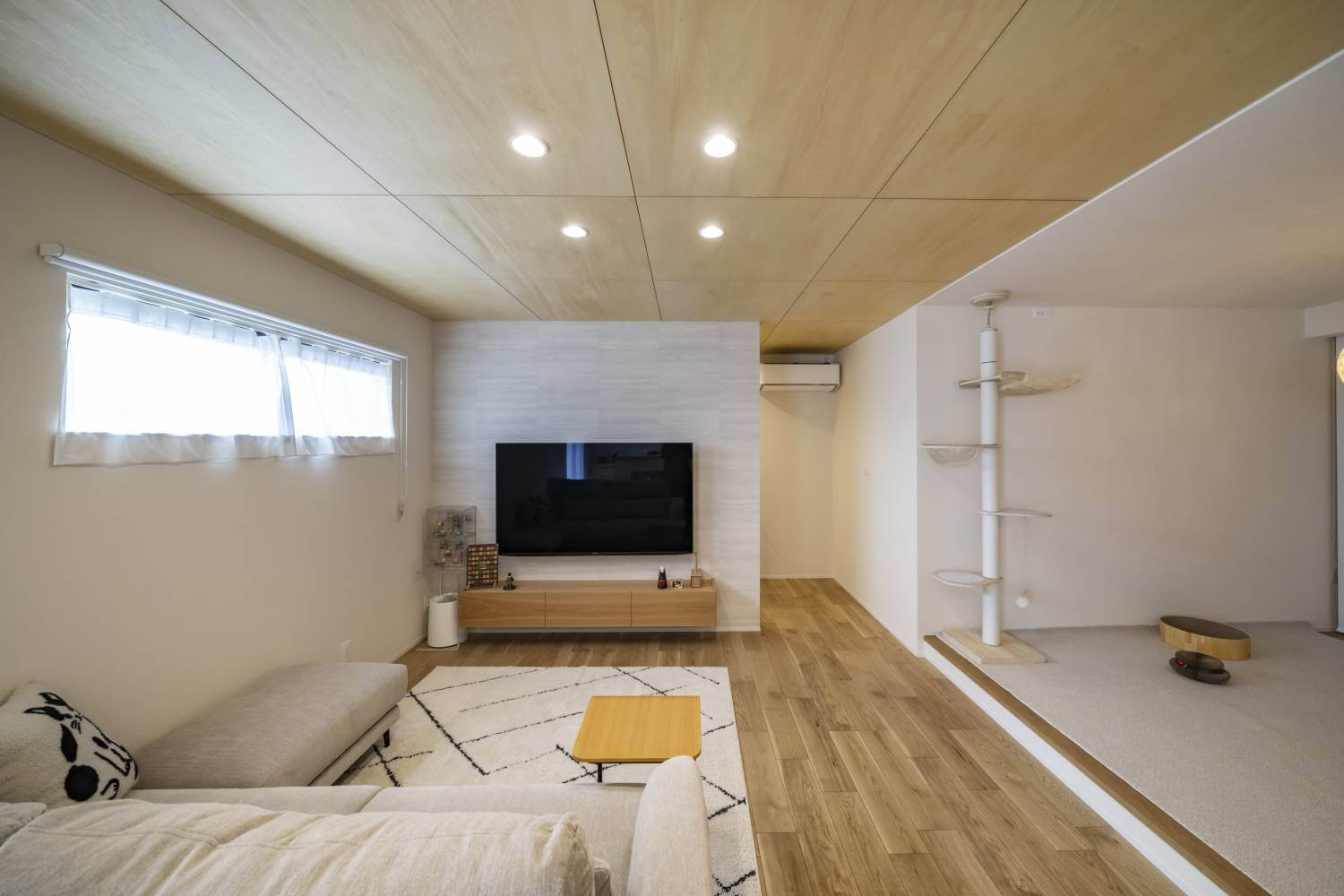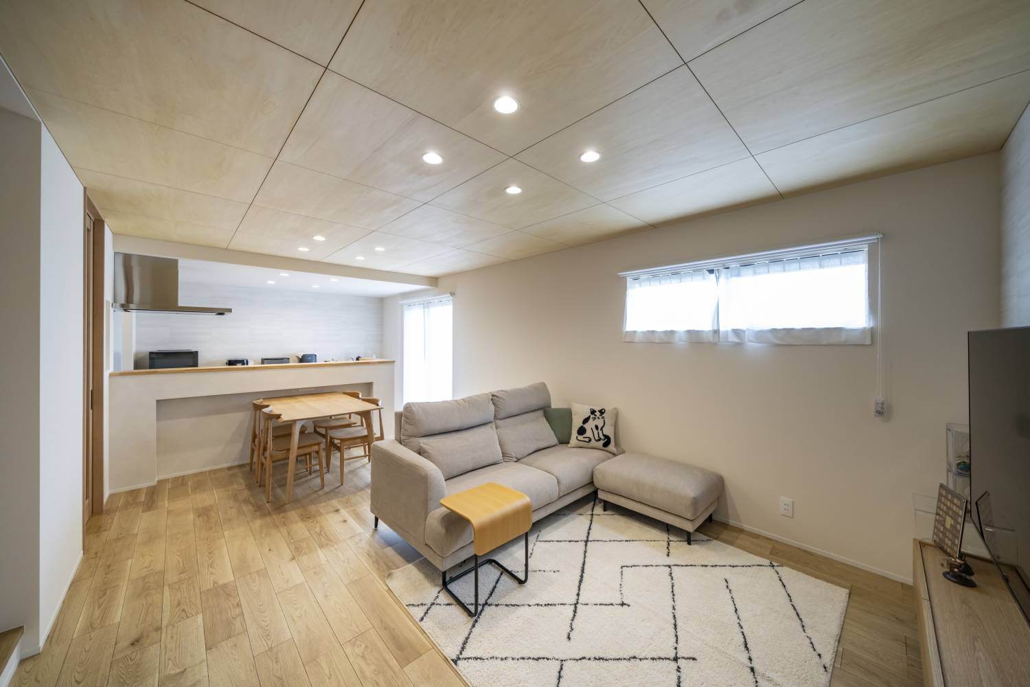 木天井を採用することで、心地よい温もりのある空間を演出したリビング。