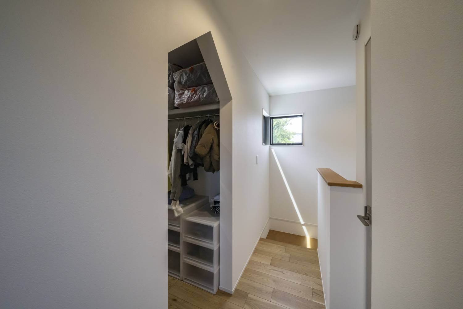 開口部を三角の形にすることで、デザイン性と遊び心を加えた収納。