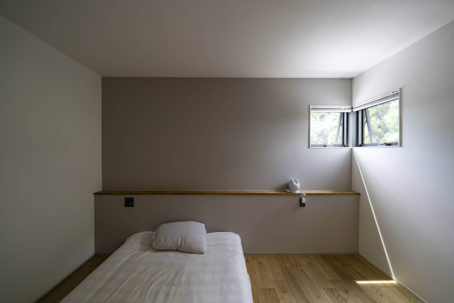 空間に個性を与えるため、一部の壁にふかし加工を施した主寝室。