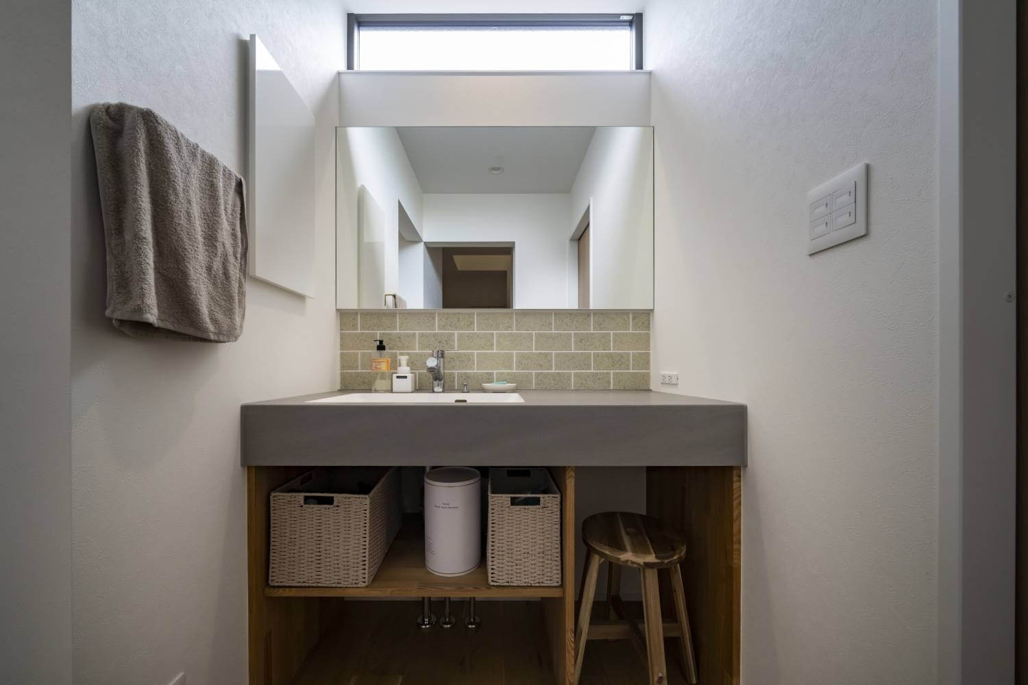グレーのレンガ調タイルが美しく映える、造作洗面台。
