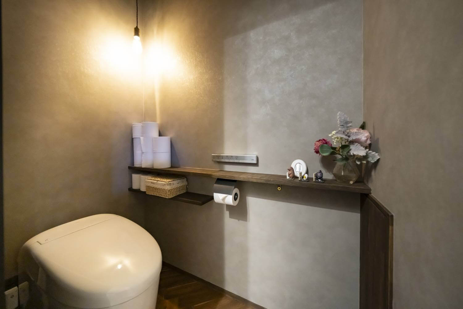 デザイン性の高いペンダントライトが、モダンな雰囲気を演出するトイレ。