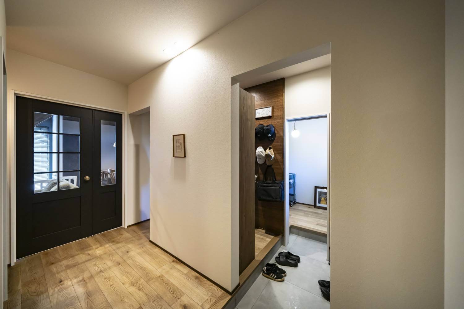 趣味室と隣接し、シューズインクロゼットが設けられ、利便性の高い玄関。