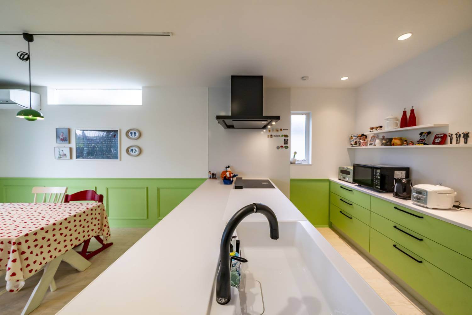 淡いライトグリーンの色使いが、料理時間を楽しく演出します。