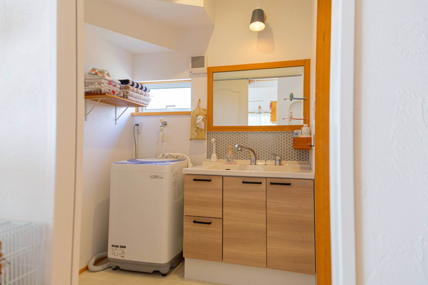 カラフルで可愛い洗面室♥ 鏡と洗面の間のタイルが素敵です!