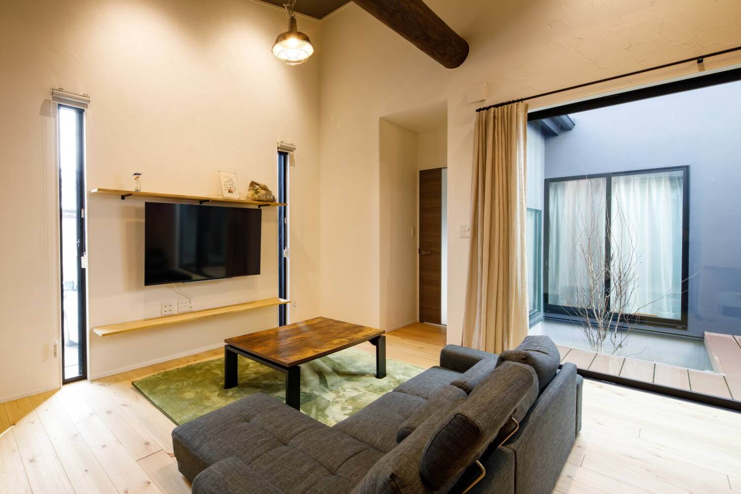 あえて天井だけクロスの色を変えることで、主役の梁をより一層かっこよく演出しています!