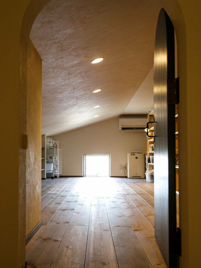 固定階段から上がれる屋根裏部屋は、まさに「遊び心」が詰まったスペース。