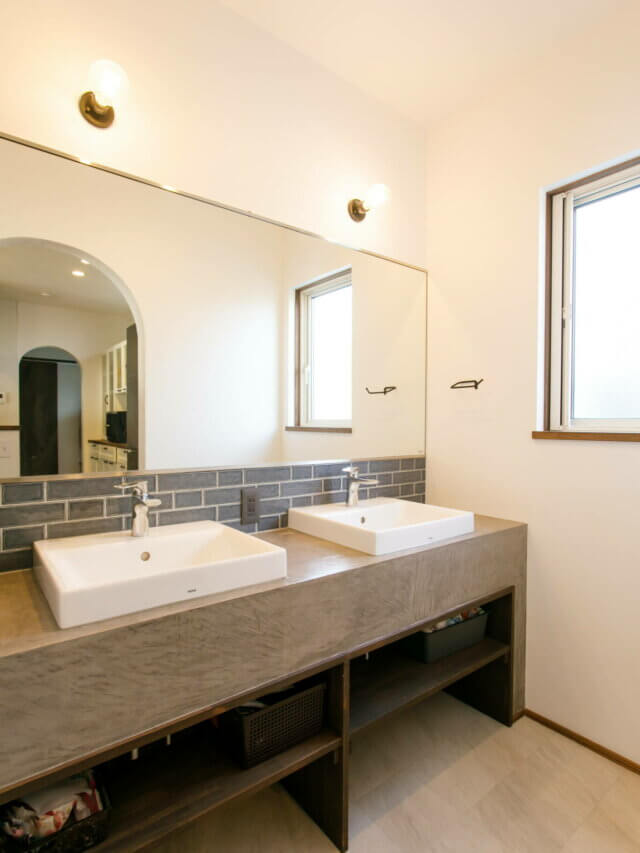 将来お子様が大きくなった時に洗面にたつ時間が長くなるだろうと想定してツーボウルタイプにしたとのこと。