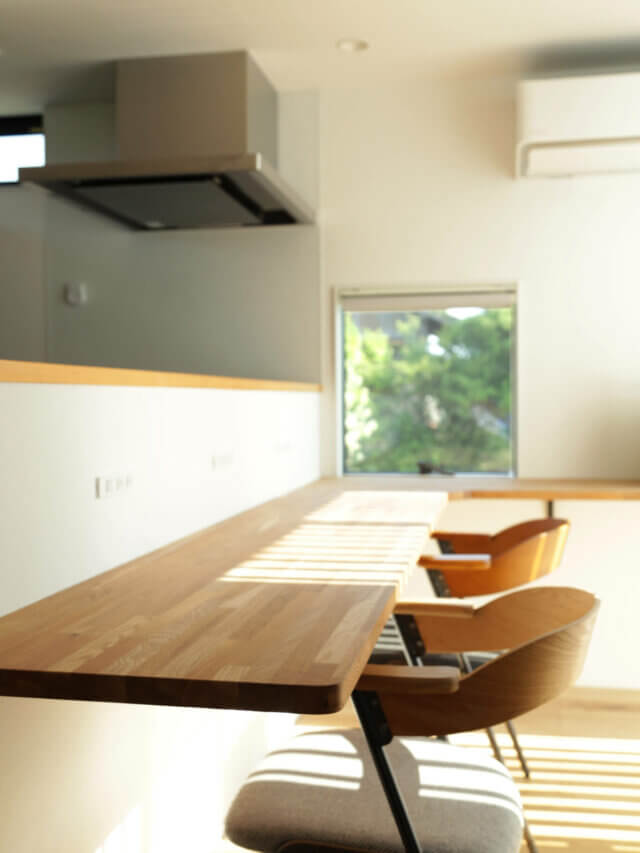 キッチンの前にあるため、勉強スペースだけでなく、軽食や家事スペースなど様々な場面で活用できます。