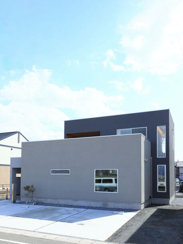 濃いグレーと薄いグレーを組み合わせることで落ち着きのある大人な外観に仕上がっています。