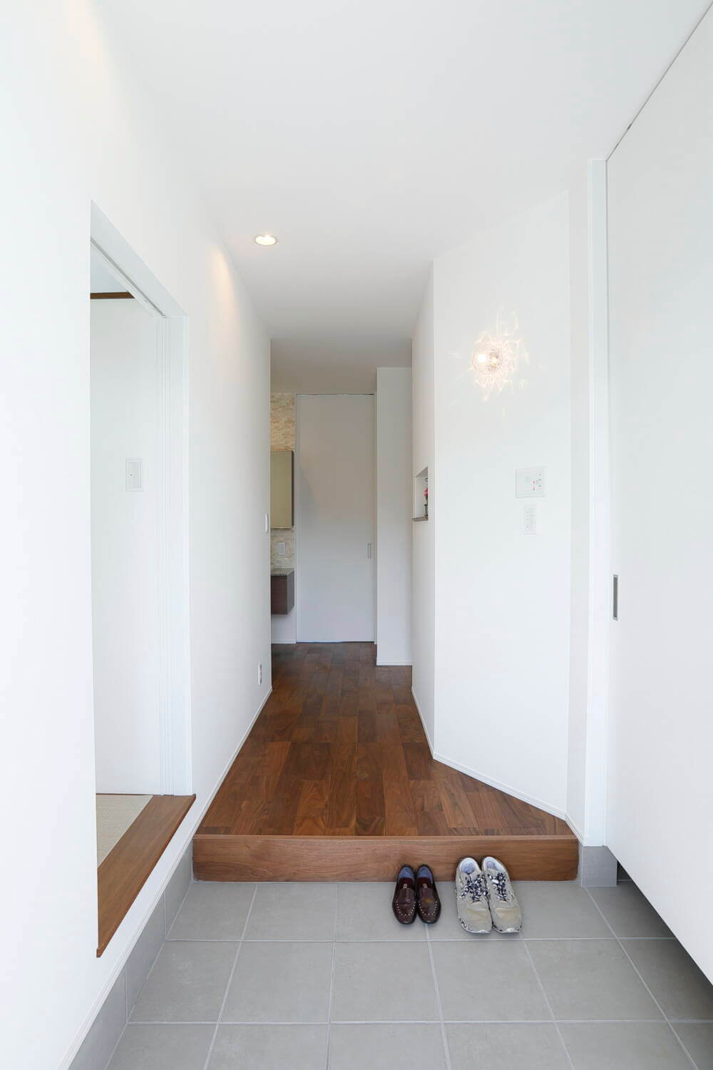 ホワイトでまとまった、スッキリシンプルなエントランス。