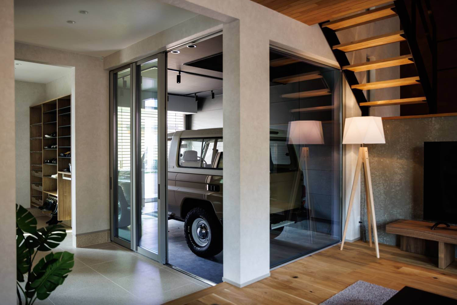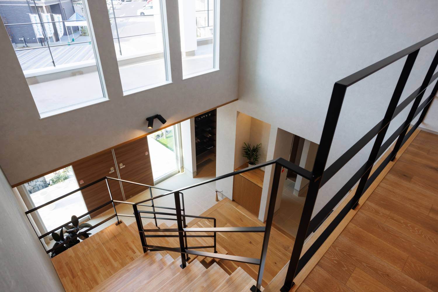 玄関を入ると、中庭がお出迎え。日中は照明がなくても、自然の光で明るく華やかな空間が広がります。