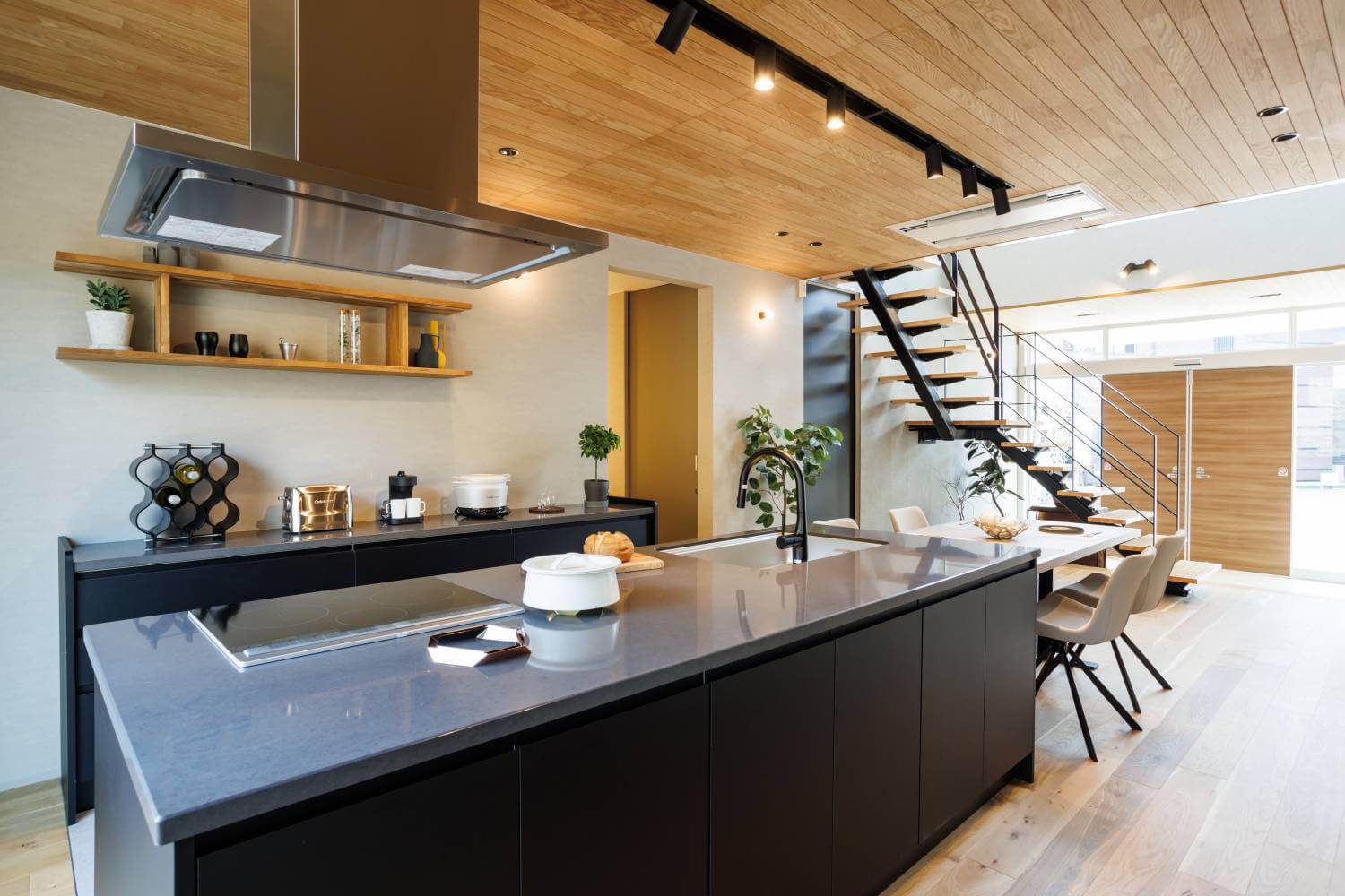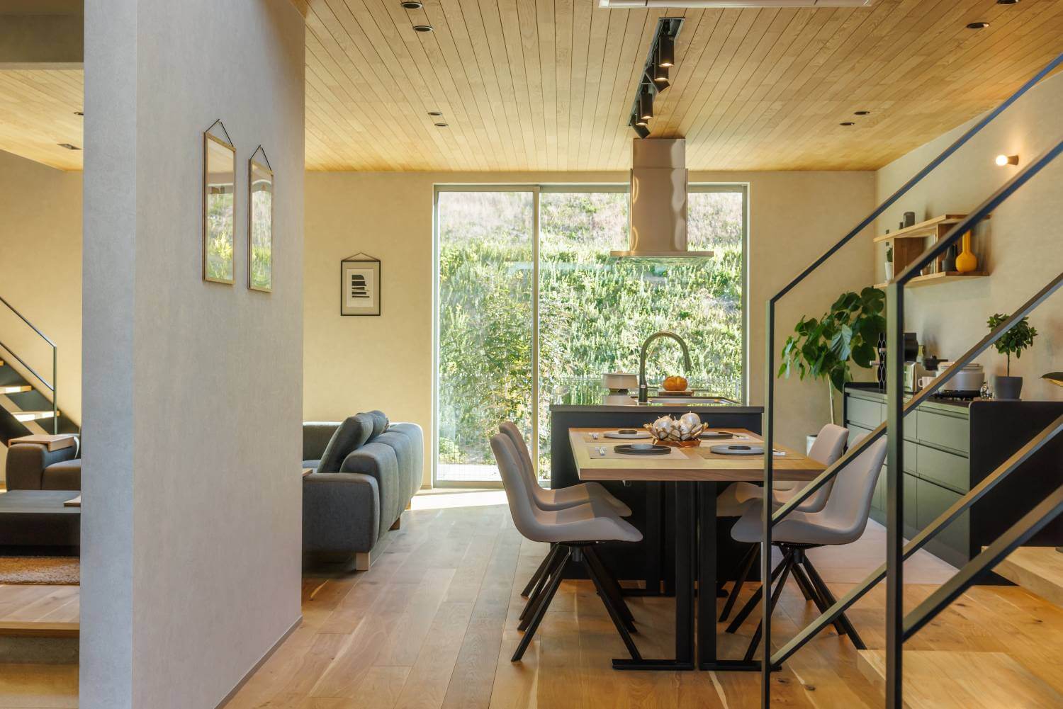 大判タイルを豪快にあしらった壁面も注目ポイントです。