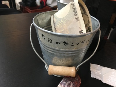 初めて訪れる方にはシステムがわかりづらいのですが、最後にお会計でも無く、キャッシュオンデリバリーでも無く、「おこづかいバケツ」制というシステムを取っています。